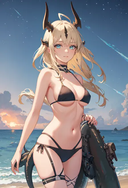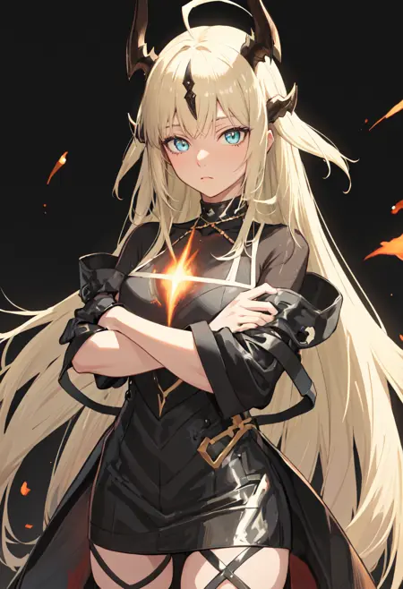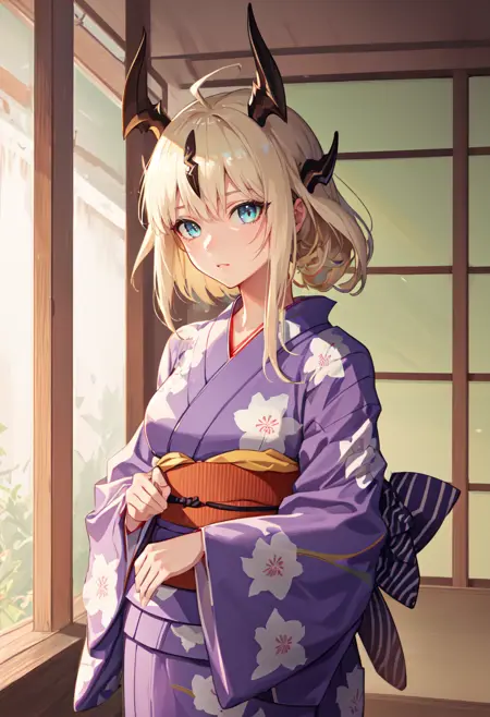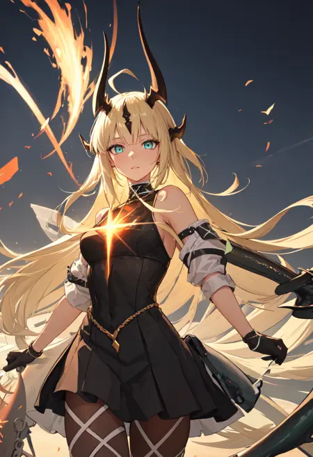 - The pruned character tags are horns, long hair, dragon horns, blonde hair, dragon girl, ahoge, tail, breasts, dragon tail, green eyes, blue eyes, very long hair. You can add them into prompts when core features (e.g. hair color) of character is not so stable.