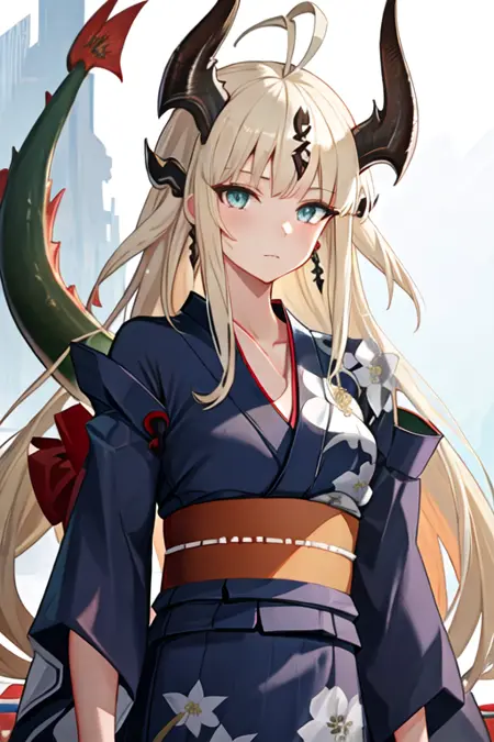 - 필터링된 캐릭터 태그는 뿔, 긴 머리카락, 드래곤 뿔, 금발, 드래곤 소녀, ahoge, 꼬리, 가슴, 드래곤 꼬리, 녹색 눈, 파란색 눈, 매우 긴 머리카락입니다. 캐릭터의 핵심 특징(예: 머리카락 색상)이 안정적이지 않을 때 이러한 태그를 프롬프트에 추가할 수 있습니다.