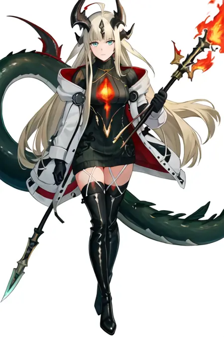 - The pruned character tags are horns, long hair, dragon horns, blonde hair, dragon girl, ahoge, tail, breasts, dragon tail, green eyes, blue eyes, very long hair. You can add them into prompts when core features (e.g. hair color) of character is not so stable.
