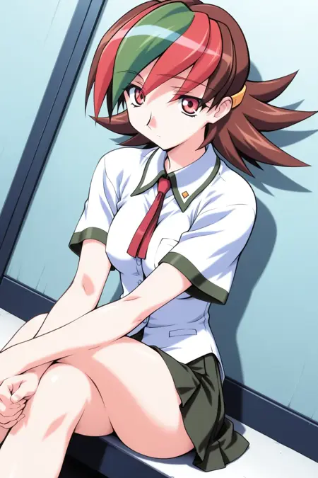 The correct order of the hair is red! green! red! but I can't seem to recreate it properly...