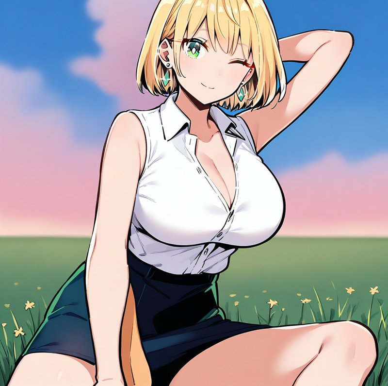 Trigger word: takinami_lemon, green eyes, blonde hair, short hair, earrings,