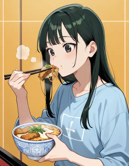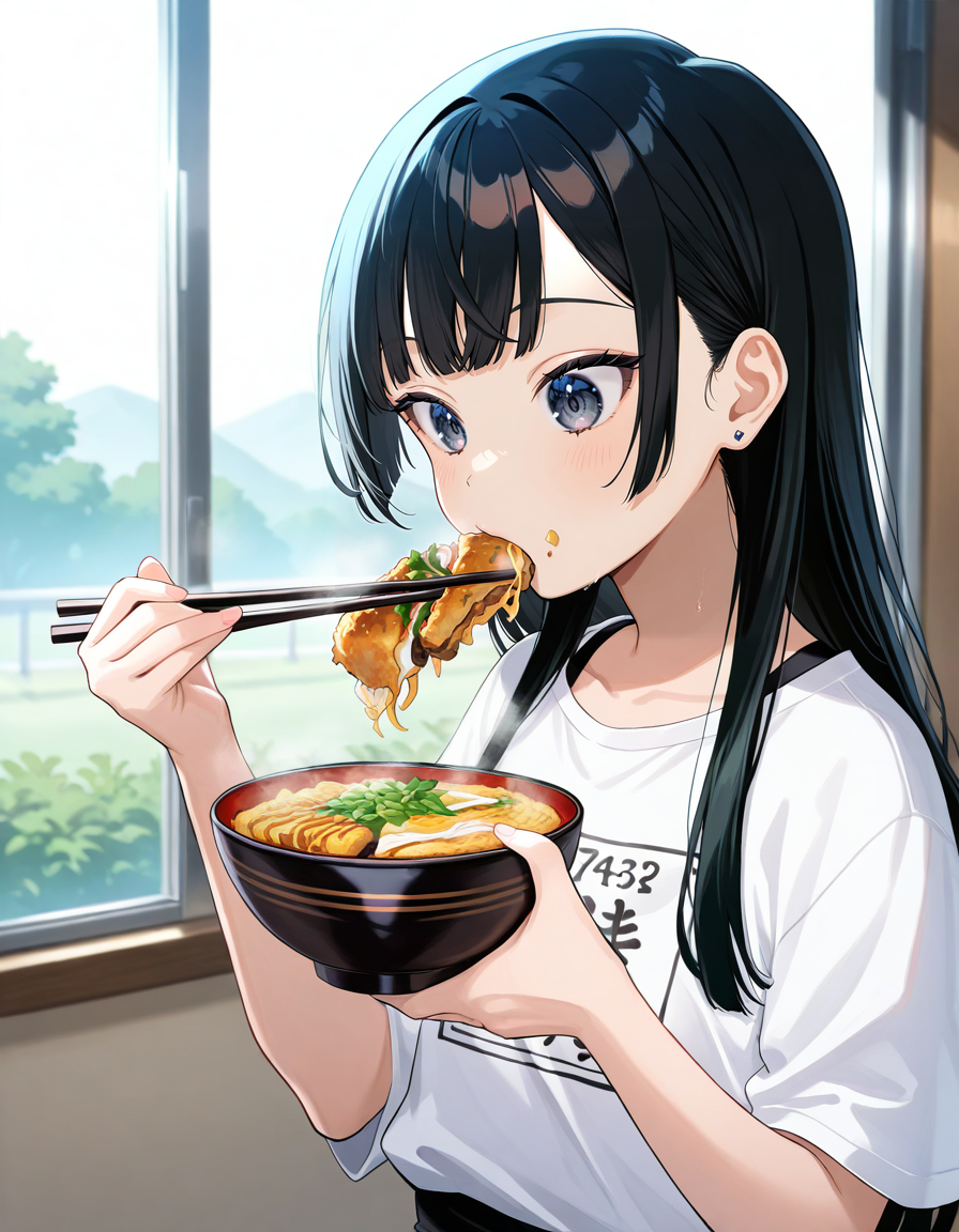 chopsticks, eating, indoors, bowl, holding, restaurant, holding chopsticks, gyuudon, eating gyuudon,