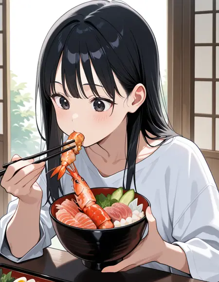 chopsticks, bowl, fish, shrimp, kaisendon, seafood, eating kaisendon,