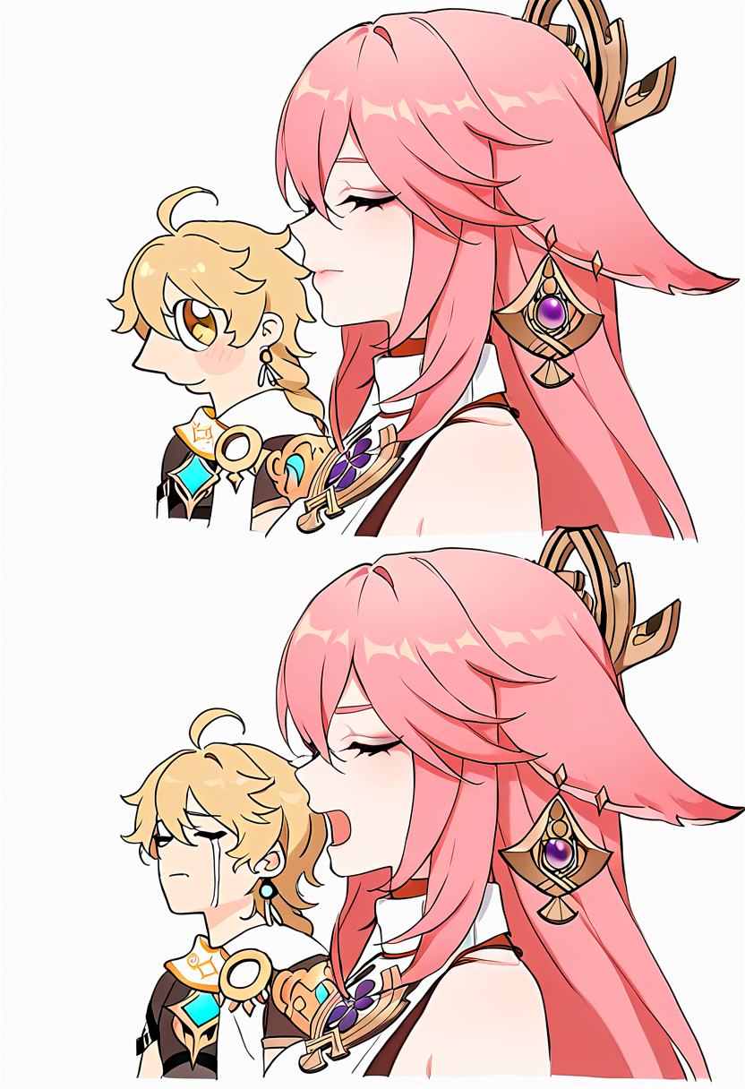 触发词:good boy, comic, simple background, closed mouth, looking at another, open mouth, crying