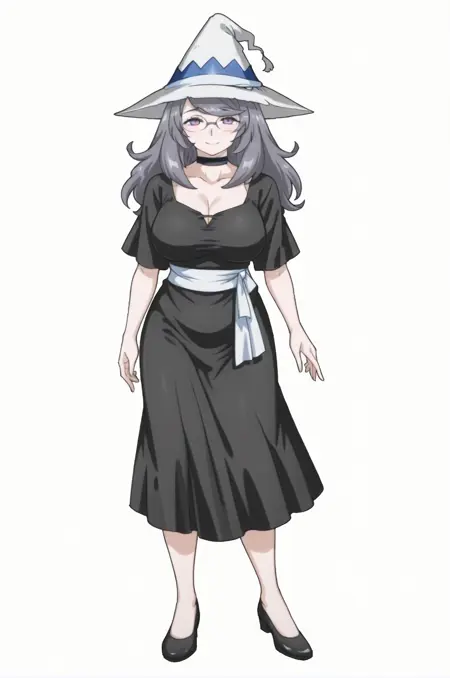 set-1: 검은 목걸이, collarbone, 마법사 모자, 검은 옷, 벨트, 짧은 소매