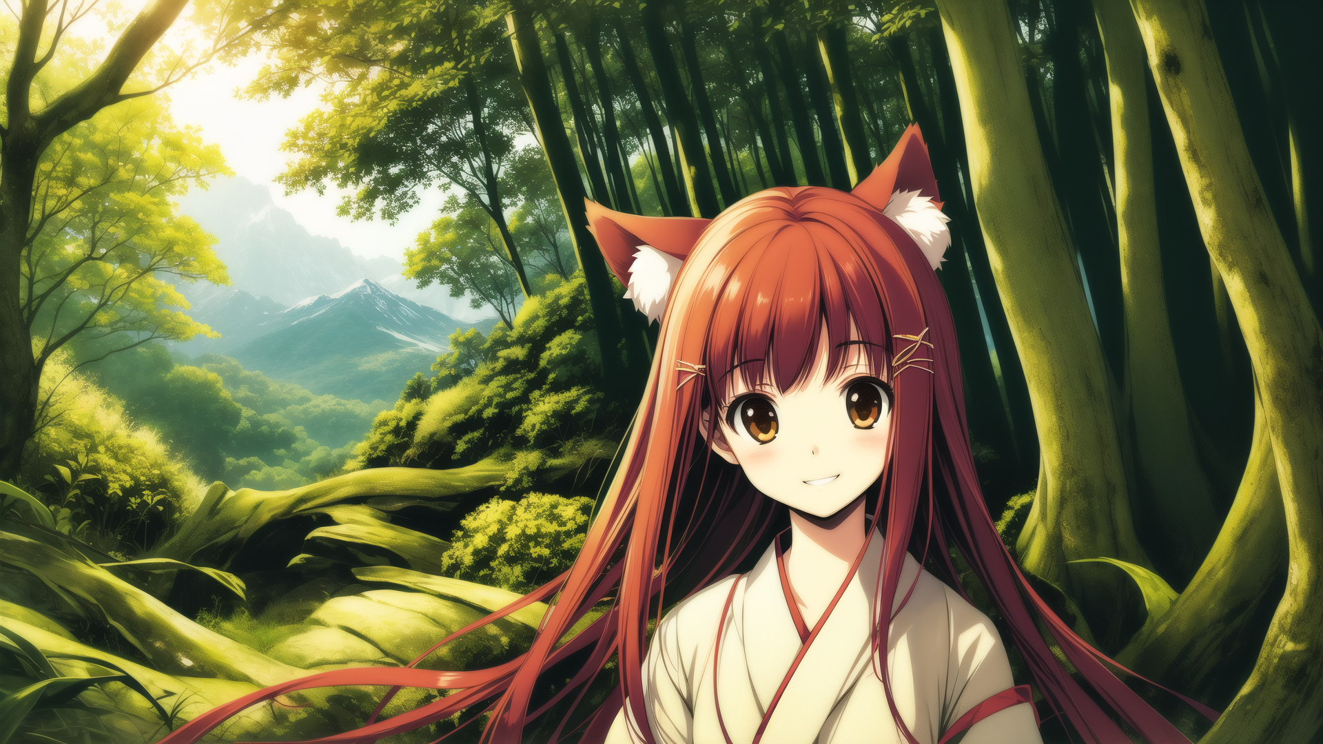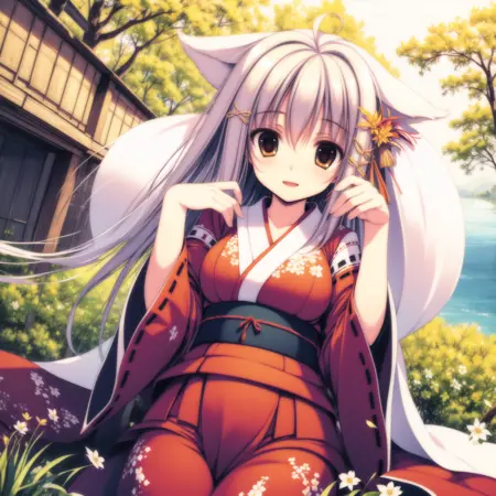 サポートワード:japanese clothes , hair ornament , kimono , straight hair , hair flower, animal ears
