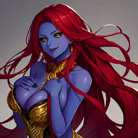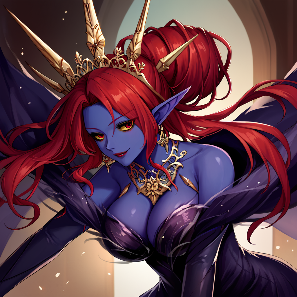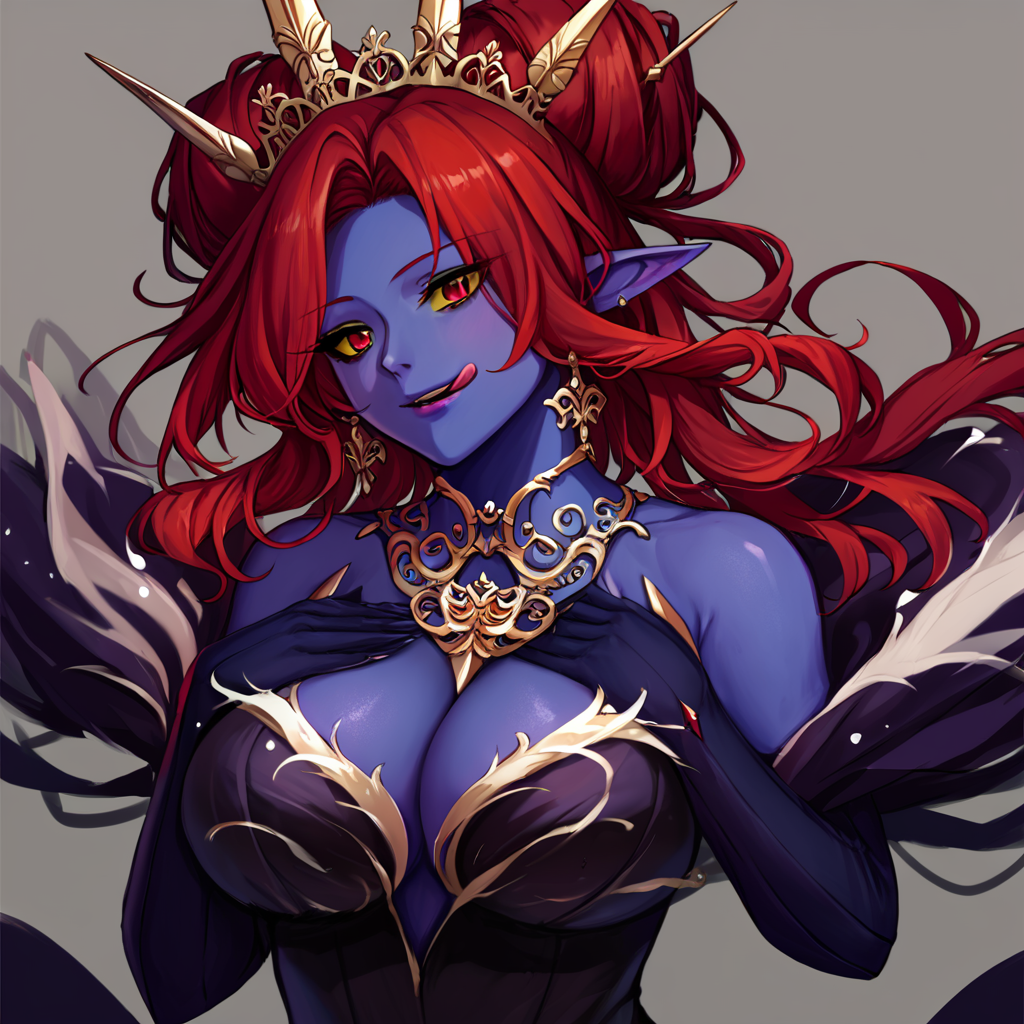| Trained Words | DNF_Sirocco, 1girl, solo, very long hair, red hair, yellow eyes, colored sclera, black sclera, colored skin, blue skin, large breasts, bare shoulders, barefootCopied! DNF_Lebeche_Sirocco, 1girl, solo, red hair, long hair, hair bun, pointy ears, red eyes, colored skin, blue skin, colored sclera, large breasts, crown, tiara, black dress, bare shoulders, long dress, elbow gloves, jewelry, necklace, earringsCopied! |