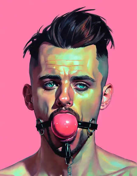예시 프롬프트: [사진/만화/등]의 [주체]가 볼개그를 착용한 모습