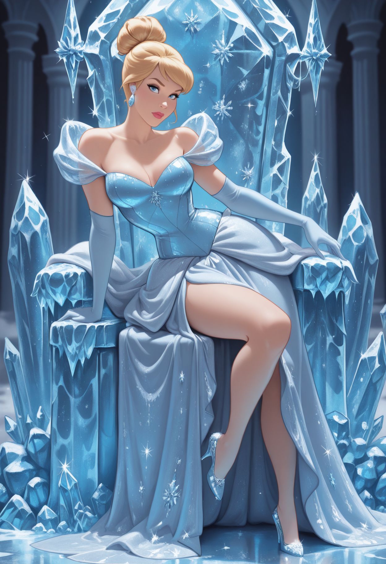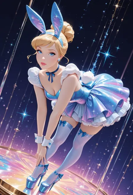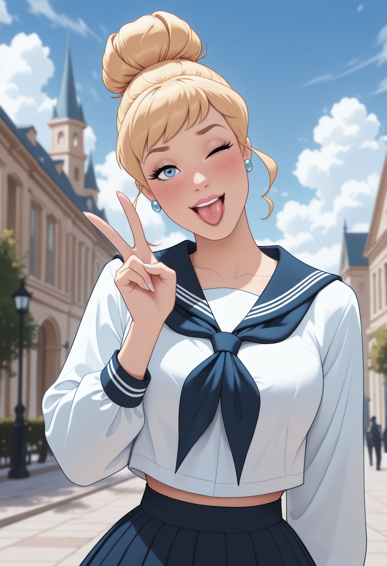 DCinderella, 1girl, blonde hair, hair bun, blue eyes