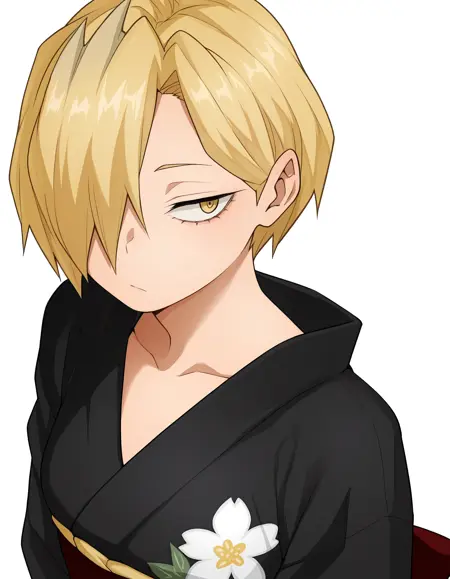 Base: ryuko, short hair, blonde hair, hair over one eye, yellow eyes