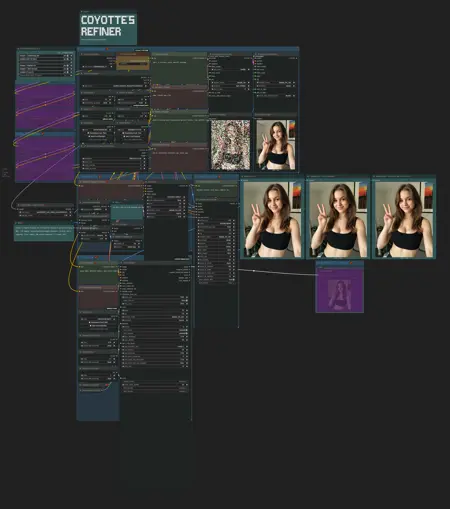 이 워크플로우는 오랫동안(7개월) 완전한 기사로 존재해 왔습니다. 그런데 최근에야 @v33tay의 도움으로 이 워크플로우가 제대로 작동하지 않았다는 사실을 깨달았습니다. 사실 그는 OG 버전 개발에 기여했으니, 꼭 그에게 감사를 표해주세요. 기본적으로 이 워크플로우는 새로운, 올바른 모드로 실행됩니다. 하지만 이전의 “잘못된 방식”도 유지해 두었으므로, 원한다면 “LEGACY REFINE” 노드를 “true”로 전환하여 사용할 수 있습니다. 경우에 따라 한 방식이 다른 방식보다 더 나은 결과를 내기도 합니다.
