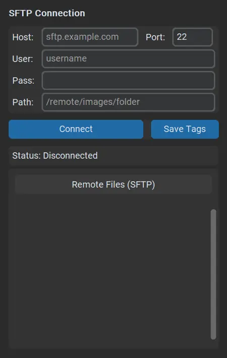.txtfile after confirmation.đž Save Tags: (SFTP Mode Only) Saves the current text in the tag editor back to the corresponding