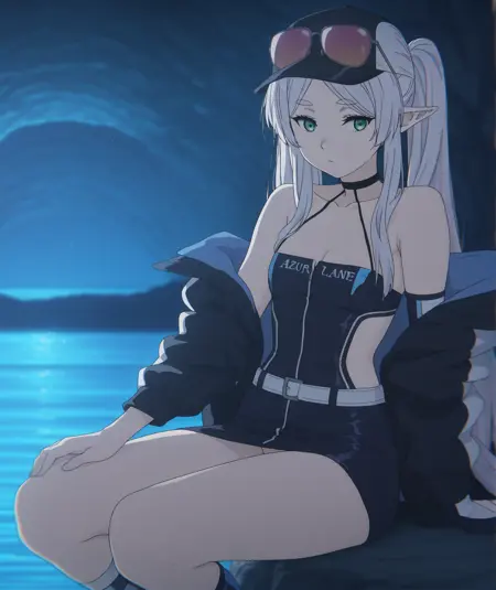 장갑, 모자, 가슴 노출, 어깨 노출, 앞목뼈, 재킷, 허벅지, 목걸이, 팔꿈치 장갑, 어깨 노출, 검은 재킷, 할터넥, 선글라스, 야구 모자, 머리에 안경, 레이스 퀸, 흰 벨트, 할터 드레스, 머리장식에 안경, 한쪽 손가락 없는 장갑,