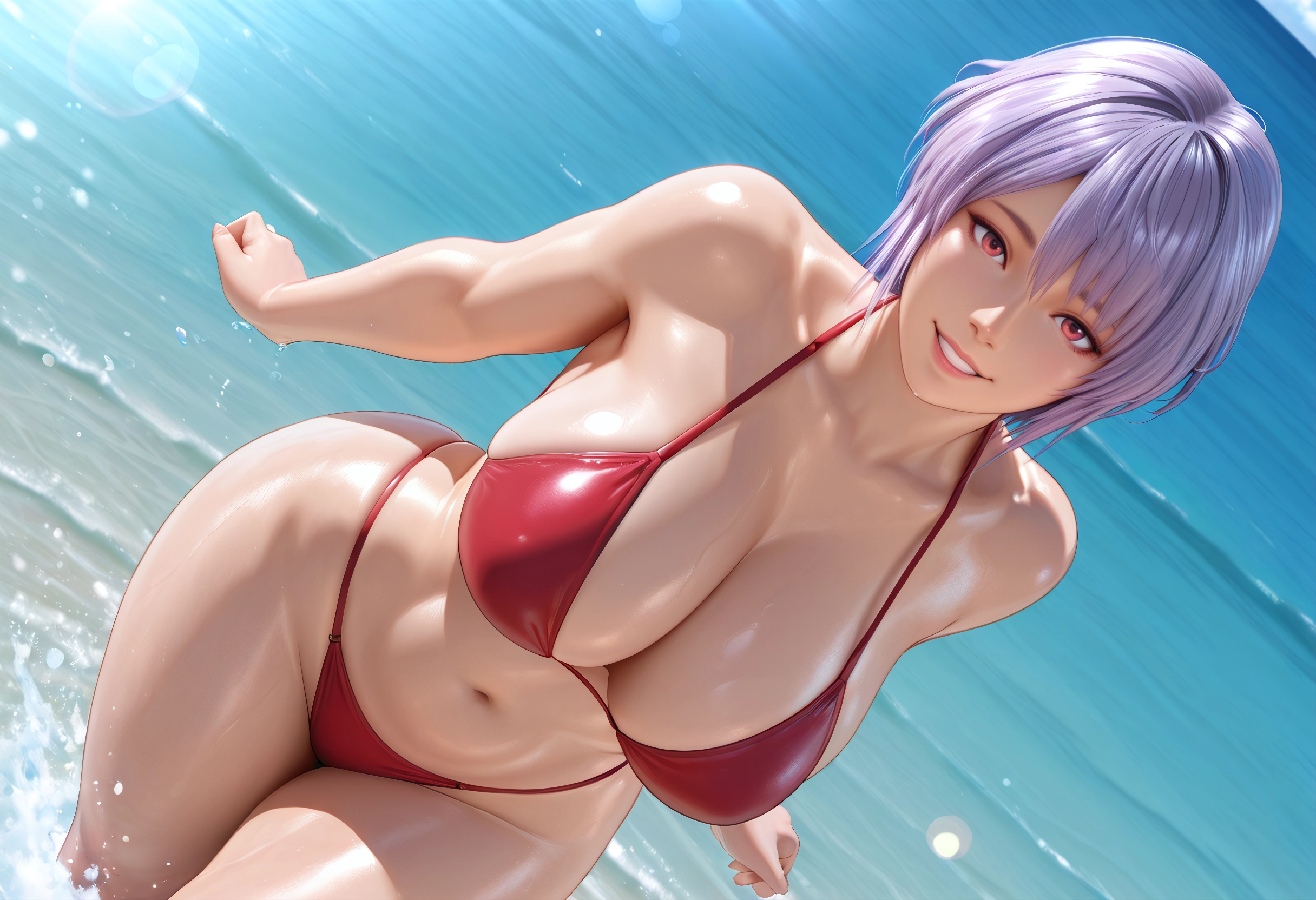 shizukudoa, short hair, red eyes, purple hair,