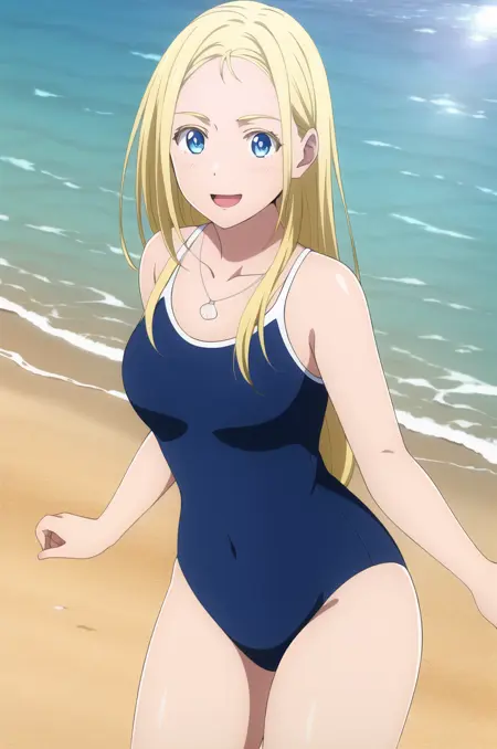 outfit_1,露肩,蓝色连体泳衣,校服泳衣,贝壳项链,