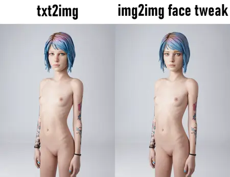 More training on SFW data for better clothing prompting. Blender 3D models serve as a source for this. 😉