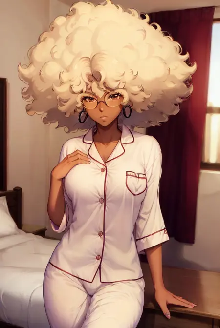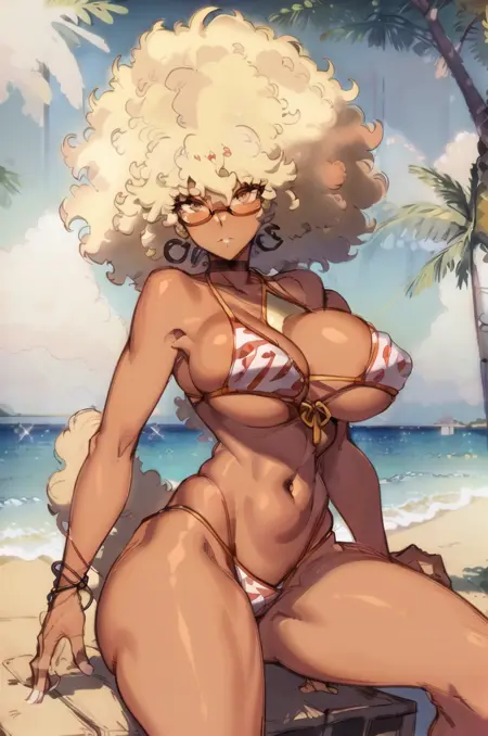 활성화 단어: afro, atsuko jackson, gray eye, blonde hair, dark-skinned female, dark skin, glasses, latina
