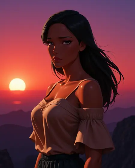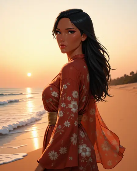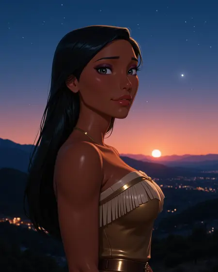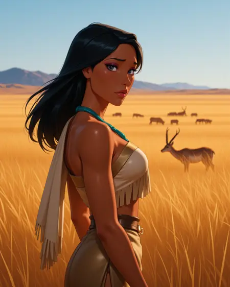 ディズニー『ポカホンタス』に登場するポカホンタスの画像を生成します。