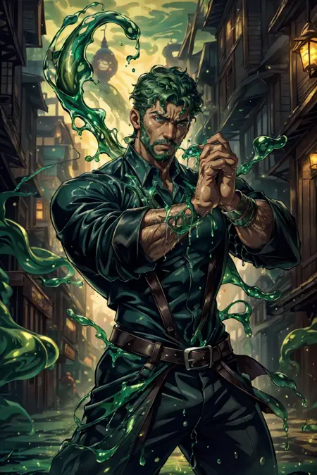 オプションタグ: covered in green liquid, swirling green liquid/smoke(必要に応じてのみ使用)