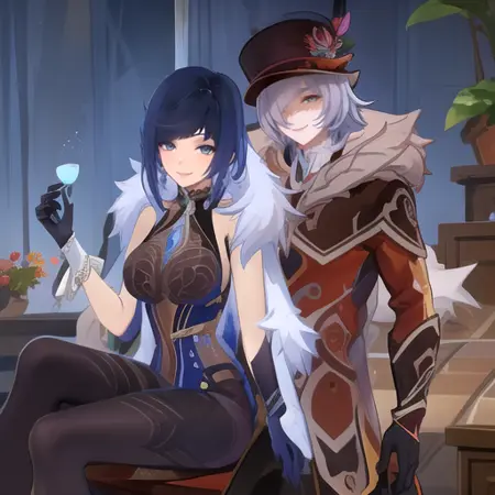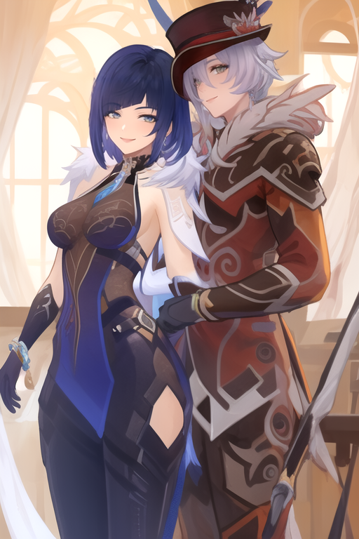 PyroYelan, a man and a woman, hetero, standing, smile, cowboy shot