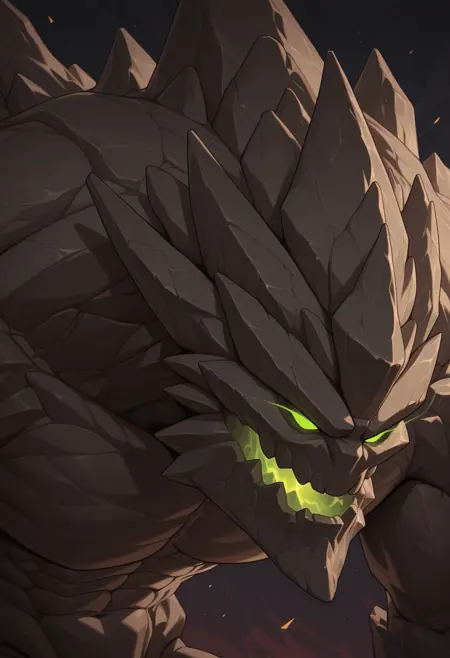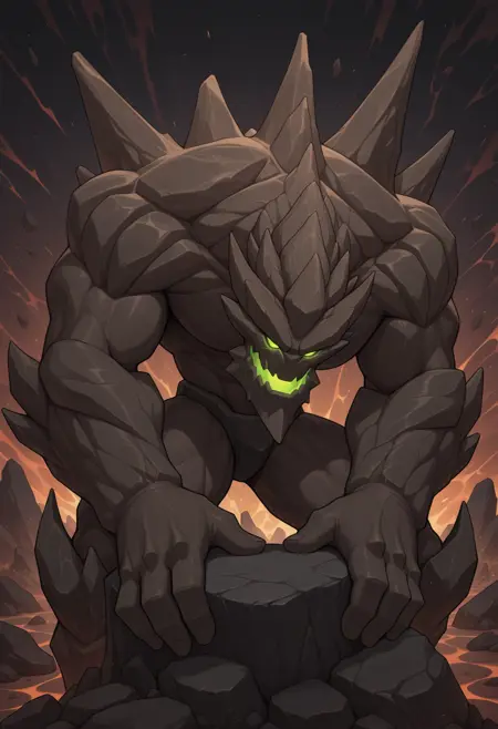 Trigger words : malphite, monster, golem, green eyes, glowing eyes, no pupils, humpback, spikes