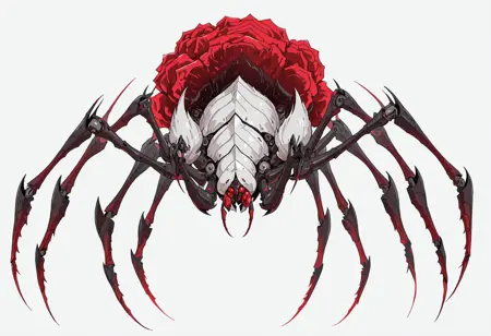 役立つ/二次的なトリガーとタグ:赤い花、赤い目、追加の目、節足動物の四肢、およびクモに適したその他のタグ
