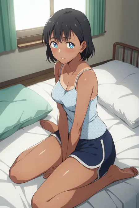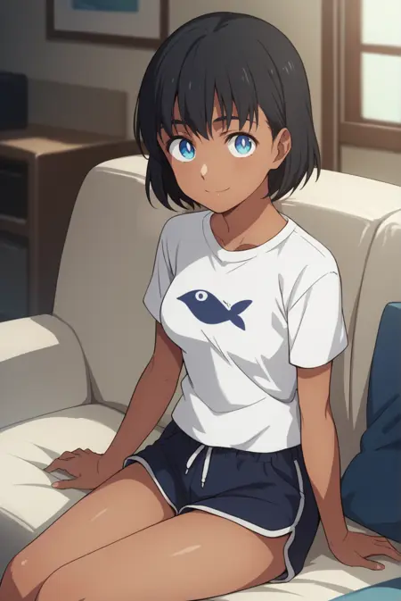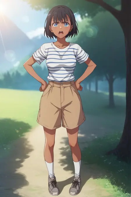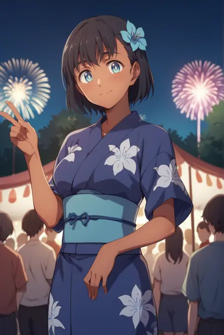 <lora:SummertimeMio-Pony-v1-07:0.7>, ChopioMio, black hair, short hair, blue eyes, looking at viewer,