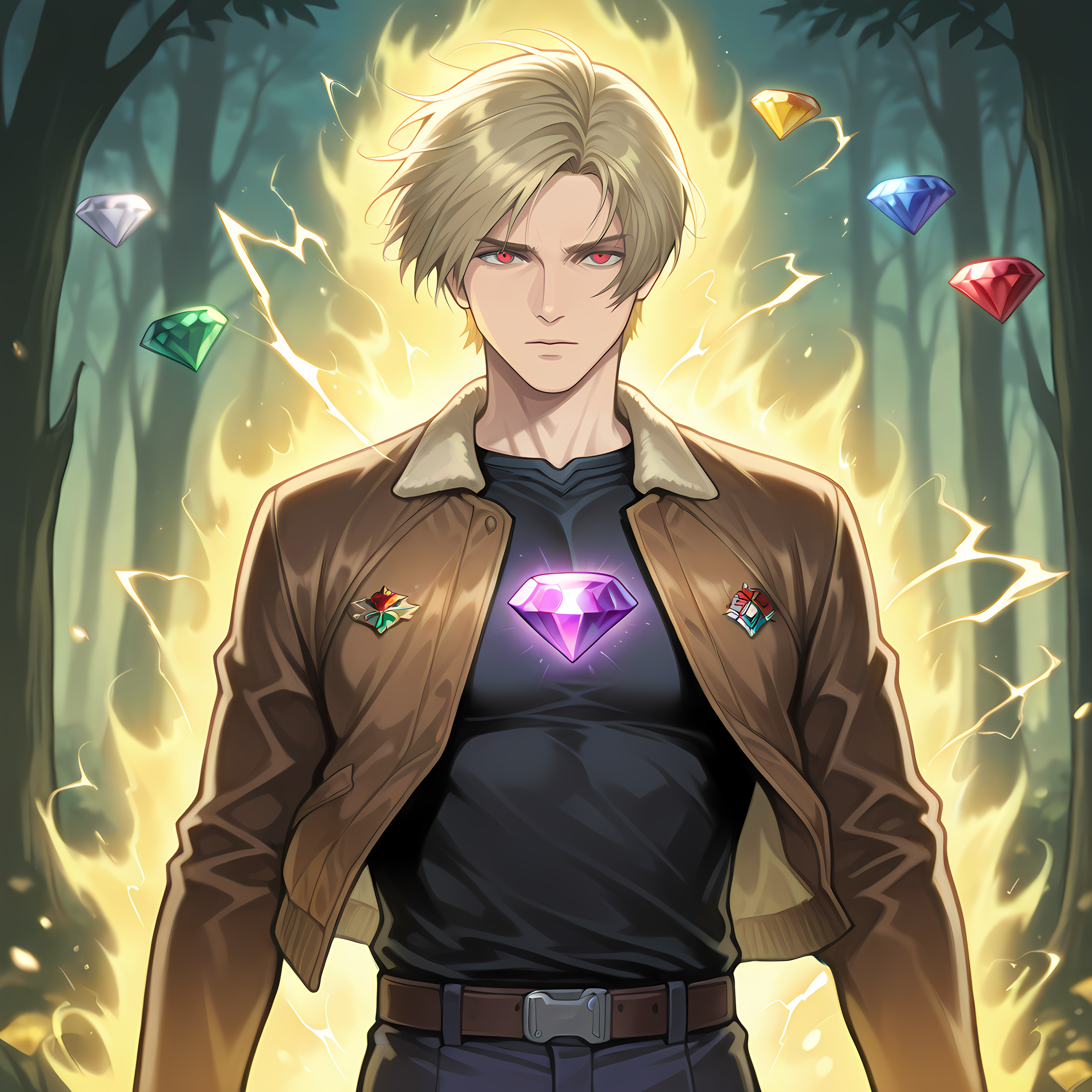 附加词:光环、金发、金色头发、飘起的头发、漂浮的头发、红眼、金色光环、电流、宝石、漂浮的宝石