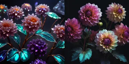 The embedding adds crystal and/or gem effects to SDXL generated images. The low step count means it’s not subtle, but I hope it shows there’s untapped potential for SDXL embeddings.