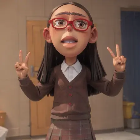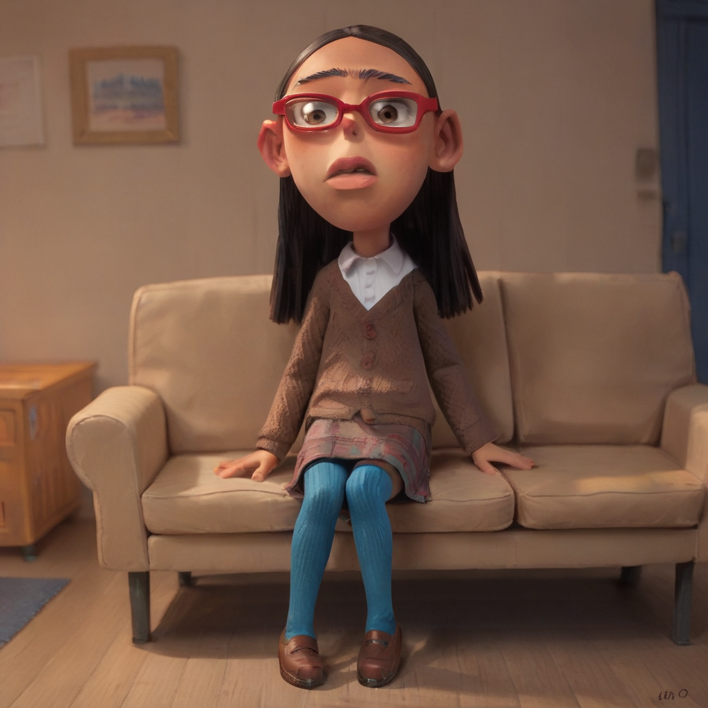SalmaRamsay, 1girl, solo, black hair, long hair, brown eyes, unibrow, lips,