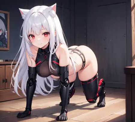 触发词:prosthetic quadruped, prosthetic arm, all fours