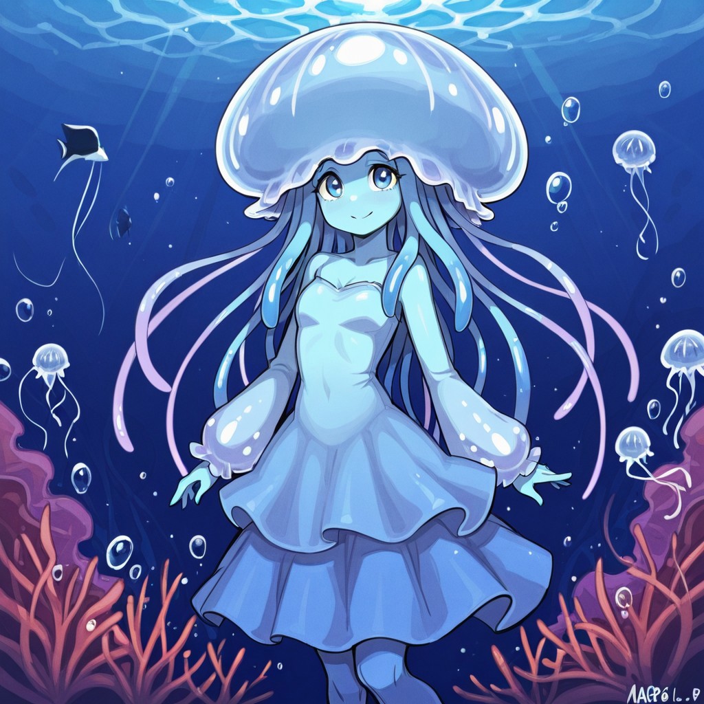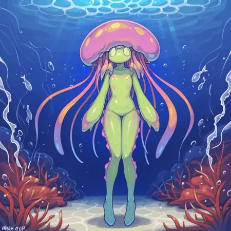 Anthro, jellyfish, jellyfish tentacle hair, jellyfish head,