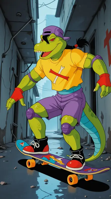 スタイルタグ: 1980s_(style), retro artstyle, toon_(style), Mondo Gecko \(teenage_mutant_ninja_turtles_(1987)\,