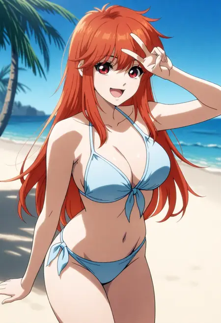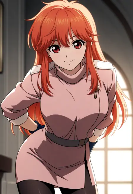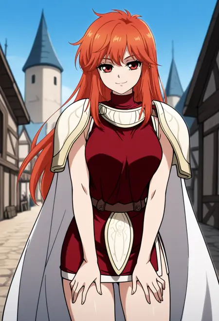 tiayoko, 1girl, orange hair, red eyes, long hair, sidelocks