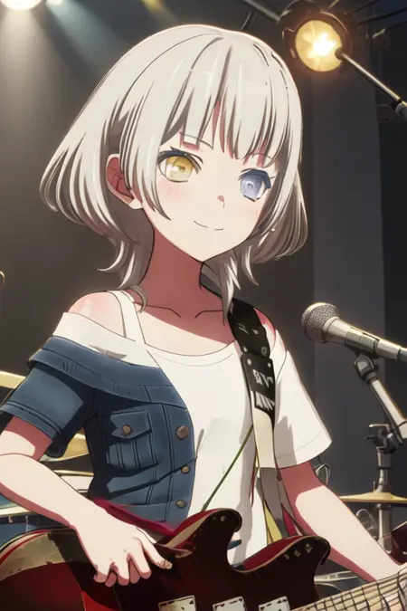 트리거 단어는 kaname_rana_bangdreamitsmygo이며, 권장 태그는 best quality, masterpiece, highres, solo, {kaname_rana_bangdreamitsmygo:1.15}, short_hair, bangs, blush, grey_hair, collarbone, closed_mouth, yellow_eyes, heterochromia, instrument, smile, blue_eyes입니다.