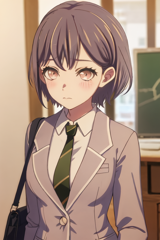 トリガー語はtakamatsu_tomori_bangdreamitsmygoであり、推奨タグはbest quality, masterpiece, highres, solo, {takamatsu_tomori_bangdreamitsmygo:1.15}, short_hair, blush, bangs, necktie, blazer, upper_body, brown_eyes, black_hairです。