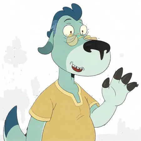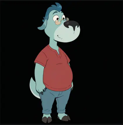 older male, hoovy, blue skin, blue hair, claws, hooves, floppy ears, colored skin, tail