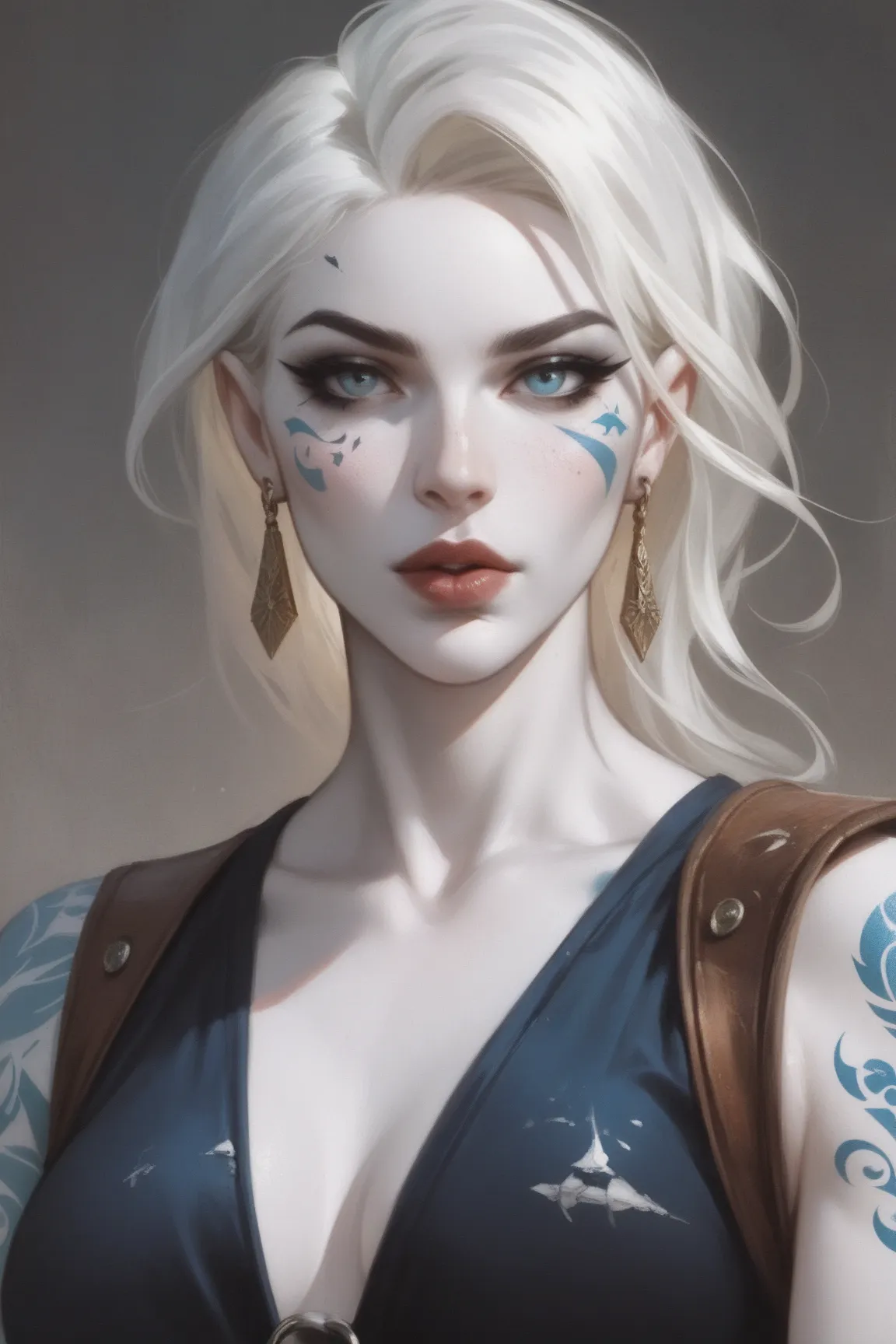 Jarael, white skin, white hair, blue lips