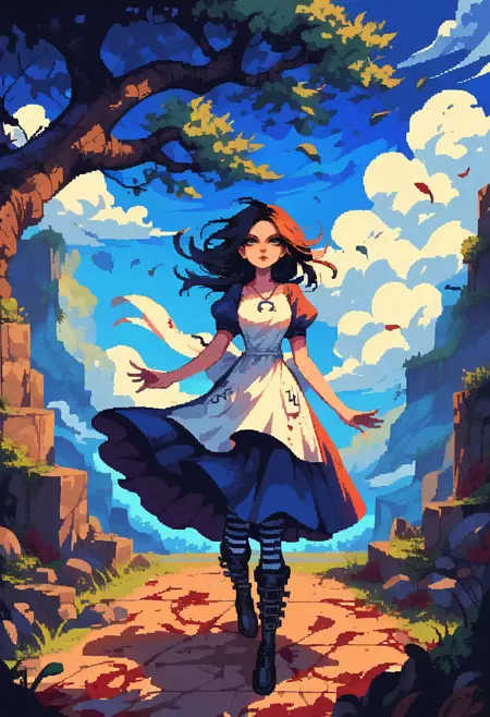 Classical v1.0: Use strength 1.0-0.8. The necklace|horseshoe pendant in full-body images sometimes works well, sometimes not so well, but can be fixed with inpainting 'only masked' with a prompt 'horseshoe pendant' and the lora. In half-body images, there usually aren't such problems. The knife|vorpal blade isn't always generated well, but often is fine. Skull on her back should works well with 'skull', you may to use it with lower strength. I notice the lora have predisposition to oversaturation sometimes. I will try to fix or decrease that effect at least. I think i fixed it in Classical v1.1
