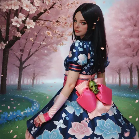 오메가 펜던트 = '말발굽 펜던트'. 이는 유사한 형태를 얻기 위한 트릭입니다. 다양한 토큰을 시도해봤지만, '말발굽 펜던트'가 가장 나은 결과를 줍니다. 드레스 리본 위의 해골도 마찬가지입니다. 실제로 이들은 마스크인데, 데이터셋에서 '해골 마스크'처럼 태깅해봤지만 결과는 최악이었습니다. 해골이 앨리스의 얼굴에 드레스에 인쇄된 듯이 어디에나 나타났습니다.