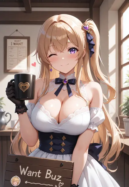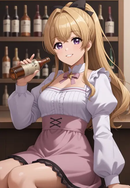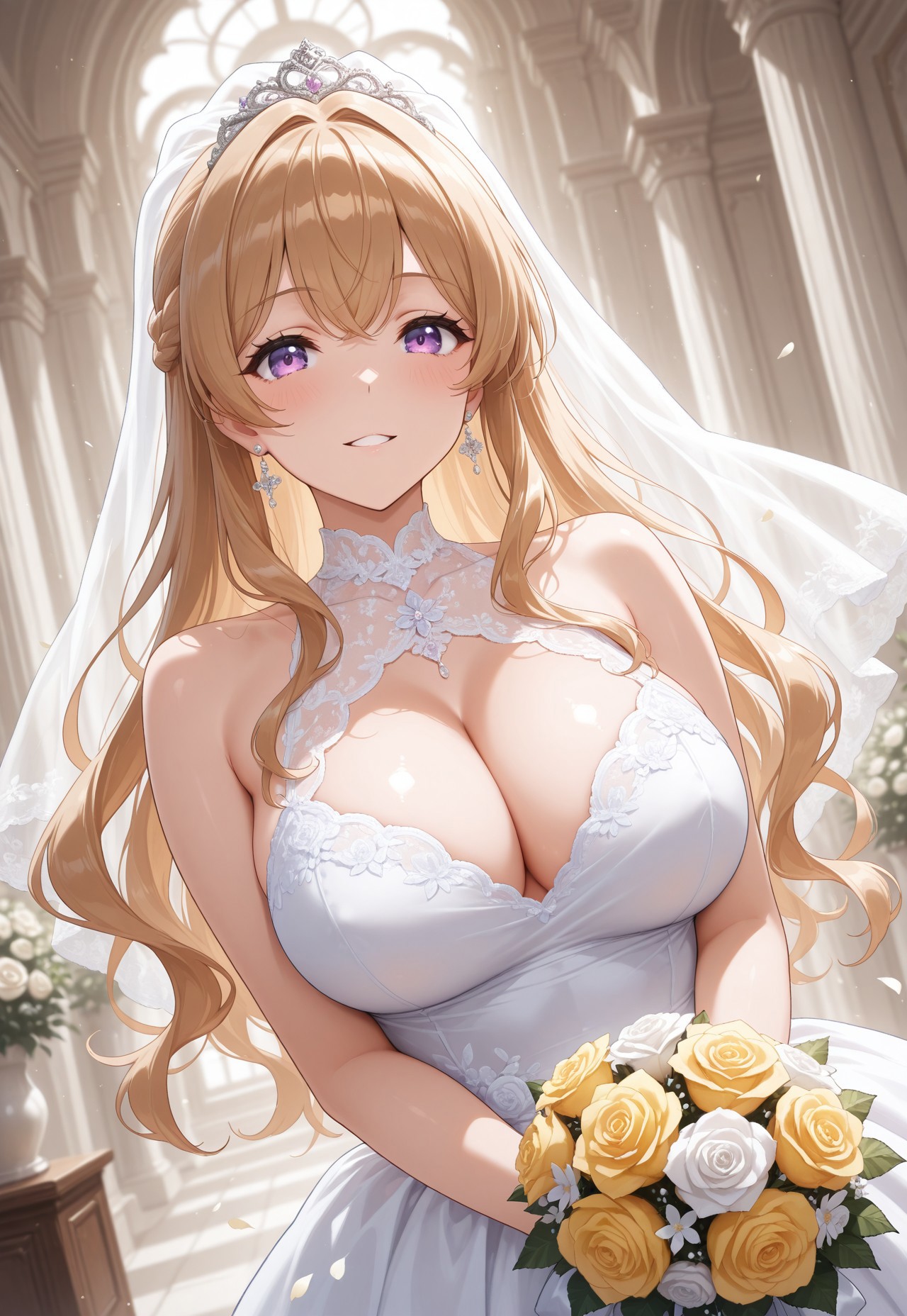 manakase, purple eyes, long hair, blonde hair, brown hair