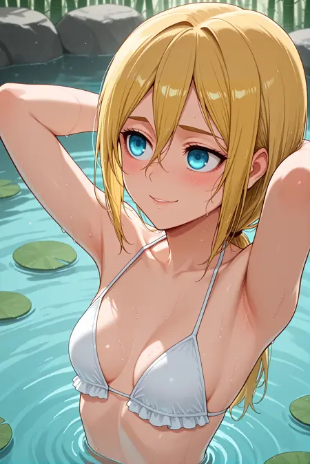 ベースプロンプト:h1st0r14、金髪、青い目、目の間に髪、長い髪