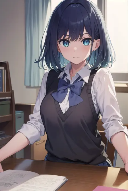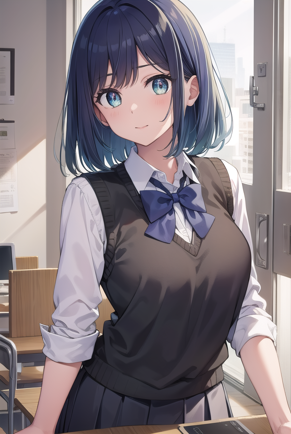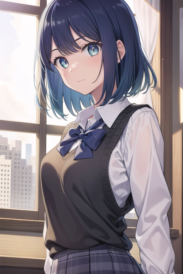 akane kurokawa, aqua eyes, blue hair, medium hair, sidelocks,