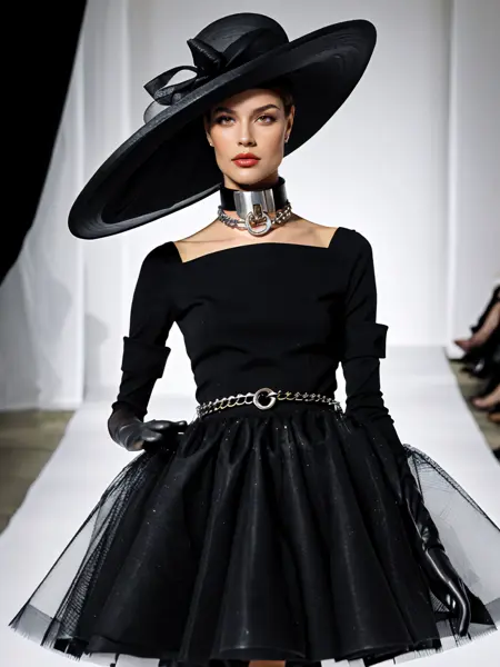 This lora generates a metal collar accessory with attached ring that can be used in different settings (fashion, fetishwear, RP etc). It usually presents as a black band with silver clasp in the front. With prompting you should be able to generate different looks such as solid gold or silver. It is designed to be flexible and works well with numerous checkpoints.