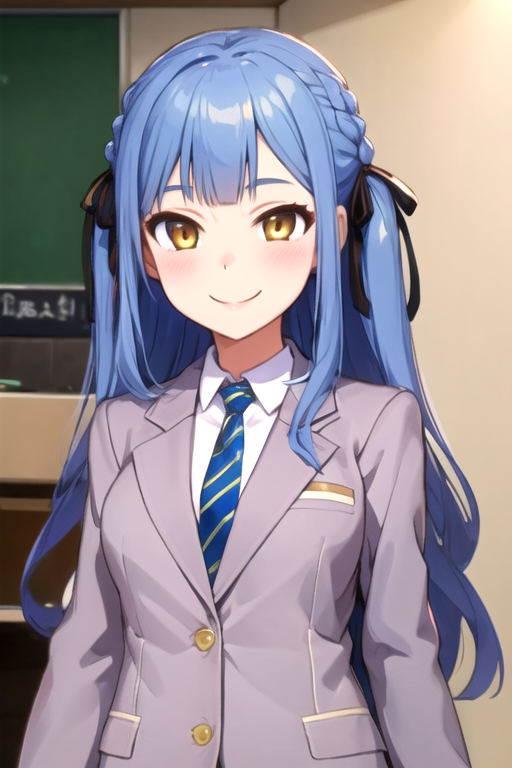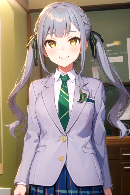 haneoka 校服(西装外套款):togawa sakiko,发辫,绿色条纹领带,白色领衬衫,(灰色西装外套),绿色百褶裙,