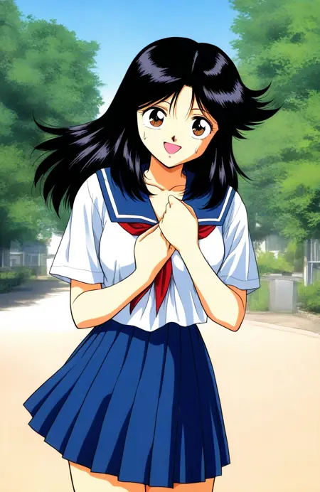 Shiratori_Moeru, 1girl, solo, long hair, medium breasts, bangs, black hair, brown eyes,