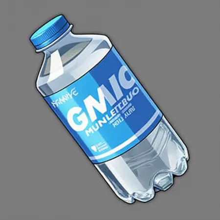 例:,gmic_\(youxitubiao\),a bottle of mineral water with a blue lid and blue label,grey background