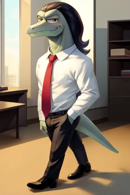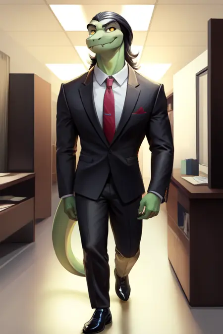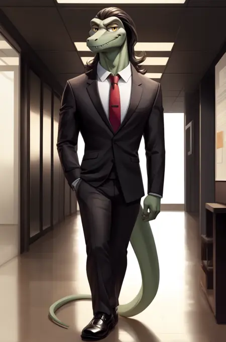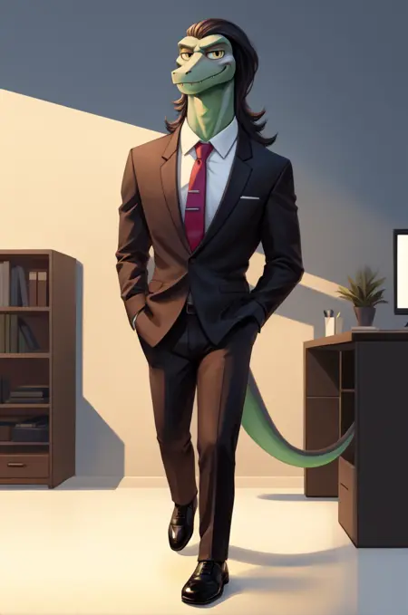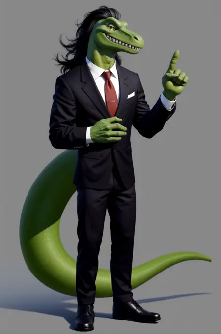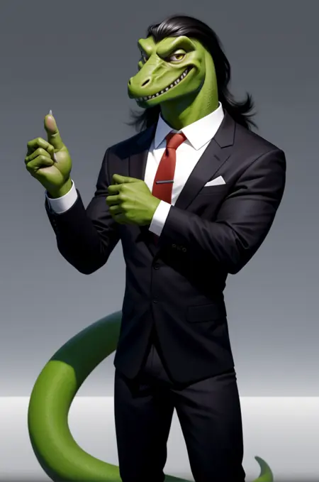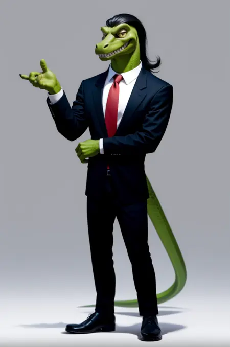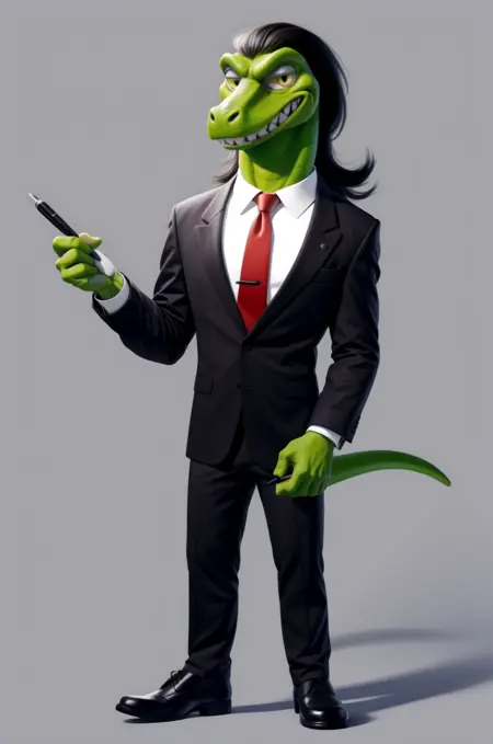 ほとんどの画像では濃いグレーのスーツを着ているため、そのスタイルで生成するのが最も適していますが、ある程度のバリエーションも可能です。