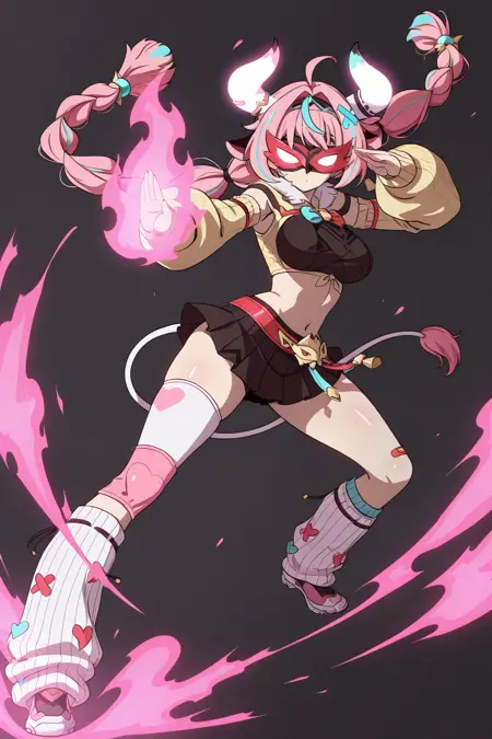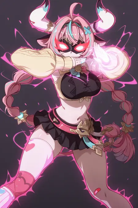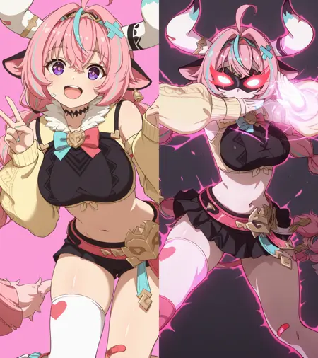 varesa, purple eyes, pink hair, two-tone hair, cow tail