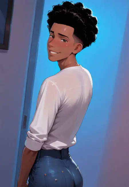 M1lesMorales, dark skin, black hair, curly hair, undercut, hazel eyes